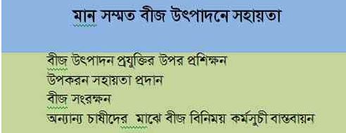 | ৩ | মানস্মমত বীজ উৎপাদনে সহায়তা | দেখুন | |